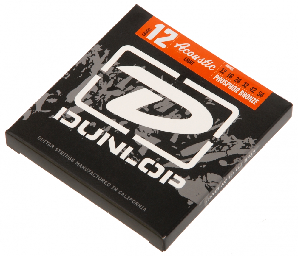 Dunlop Phosphor Bronze acoustic guitar strings begin with the finest materials. Custom wound onto a high carbon steel hex core, they offer players a warm full-bodied tone with incredible clarity and dynamics. The Dunlop's formula creates strings that are exceptionally long-lived; they break in fast and stay bright so you can spend more time playing and less time changing your strings. Whether your finger picking or strumming your bass notes will remain focused, chords will ring out and harmonics will pop and sing. Every set of Dunlop Strings come packaged utilizing three levels of moisture protection and sealed in a VCI Fresh Technology (Vapor Corrosion Inhibitor) bag to guarantee that your strings arrive as fresh as the day they were made.