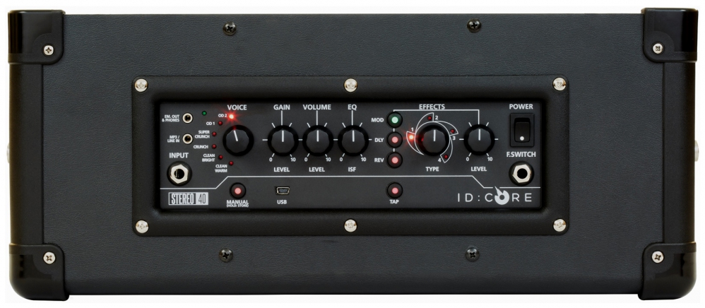 The ID:Core Stereo 40 is a 2x20W ultimate entry level guitar amplifier. Incredible tone and flexibility is accessed by a simple and intuitive control set and delivered in SUPER WIDE STEREO to give an immersive playing experience that will have you hooked on playing guitar. ID:CORE represents the culmination of more than seven years’ technical Research and Development. These amps have an intuitive control set like a traditional amp, but have the versatility of programmability. The unique controls allow you, the guitarist, to custom design your own sound. The Voice control has six different settings – Clean Warm, Clean Bright, Crunch, Super Crunch, OD 1, OD 2. When used together with Blackstar’s patented ISF control you can get the exact tone you’re thinking of. The effects section delivers studio quality modulation, delay and reverb effects simultaneously that you can store with your sound.