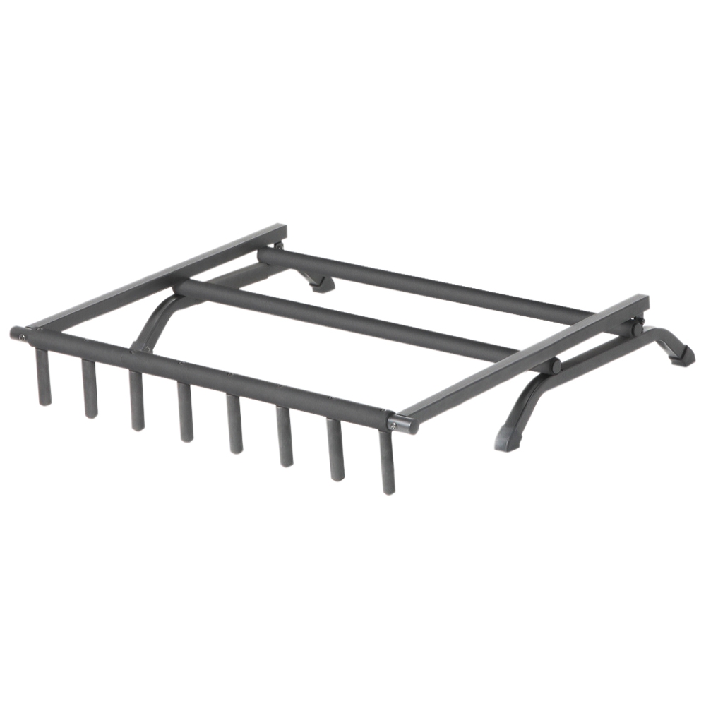 Whether in the studio, on stage, at home or even at the guitar shop. This space-saving multiple guitar stand ensures secure storage for your instruments. All the components of the stand that are in contact with the instrument are foam padded so as to avoid any scratches or marks on the instrument (not suitable for Nitrolack guitar). The stand can be folded to a compact size and therefore fits into almost any trunk. The supports are screwed onto the cross bar and can be removed if necessary, e.g. to achieve a greater distance between the instruments.