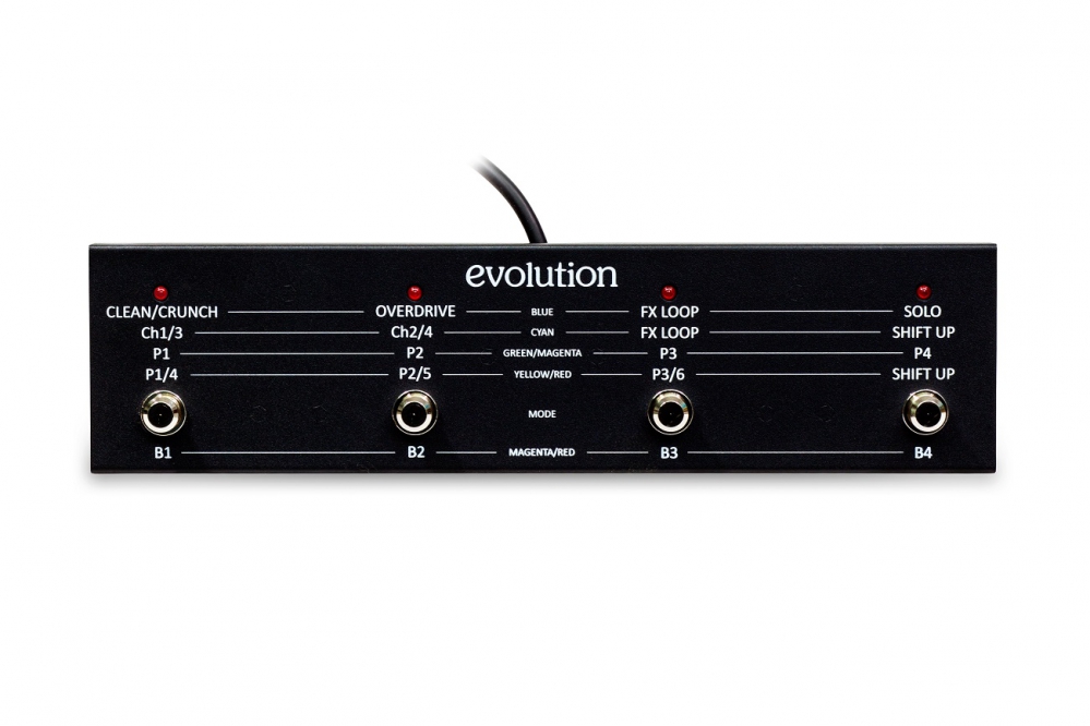 The whole amplifier is complemented with the high-quality digital reverb, enabled FX loop, four push-buttons footswitch and MIDI input and output. The selected footswitch mode allows to adjust the functionality of the amplifier to the preferences of the player. There are six modes: from the simplest, as in typical two-channel amps, to the modes using banks and presets. The MIDI input allows to control the amplifier by the MIDI controller, while the MIDI output allows to control the MIDI effect by the amp.
